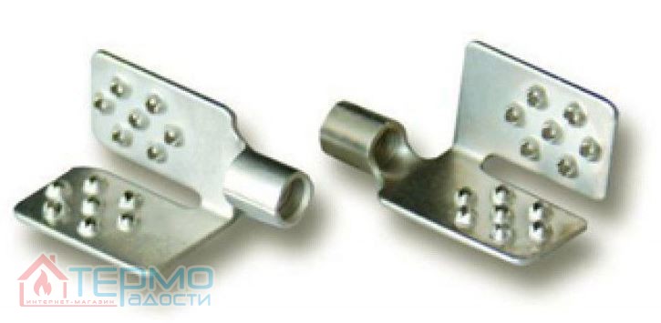Соединительный коннектор 4HEAT выполнен в виде специальной защимной клипсы и в быту часто называется - "крокодил", из-за своего внешнего вида. С его помощью обеспечивается надежное соединение питающего кабеля с медной шиной инфракрасной пленки.