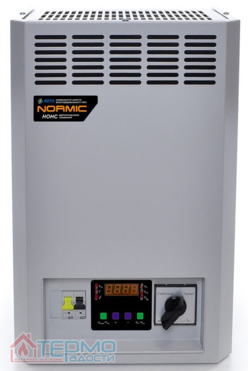 Стабилизатор напряжения Рэта НОНС Normic 35,0кВт - модель для однофазной сети 220-230В переменного тока. Отлично подойдет для бытового использования в доме, квариире, на дачи или даже в магазине, офисе и т.д. Имеет клеммное подключение к входящей лини электроснабжения на объекте. Может монтироваться на стену, либо на пол (благодаря встроенным ножкам). Оснащен современным и функциональным интерфейсом для пользователя в виде ЖК дисплея и кнопочной настройки основных параметров работы
