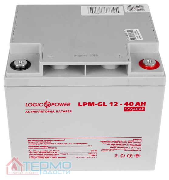 Бренд: LogicPower; Модель: LPM-GL 12 - 40 AH; Тип батареи: гелевый; Напряжение: 12V; Емкость: 40 Ач; Габариты: 197x165x170 мм.; Вес: 12 кг; Производство: Китай; Гарантия: 12 месяцев.