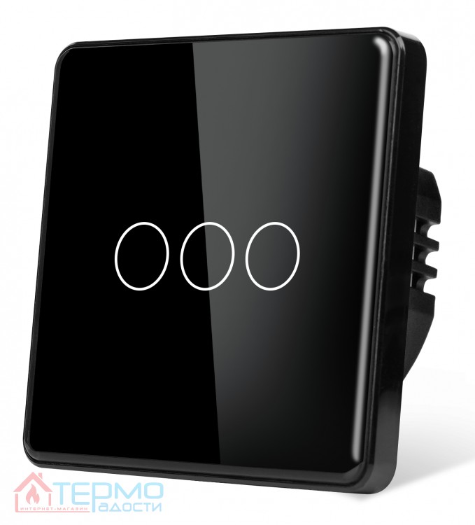 Сенсорный выключатель 1DAL с тремя сенсорами, выполненный из черного стекла и с возможностью подключения нейтрали, представляет собой надёжное, стильное и функциональное решение для управления освещением в любом помещении.
