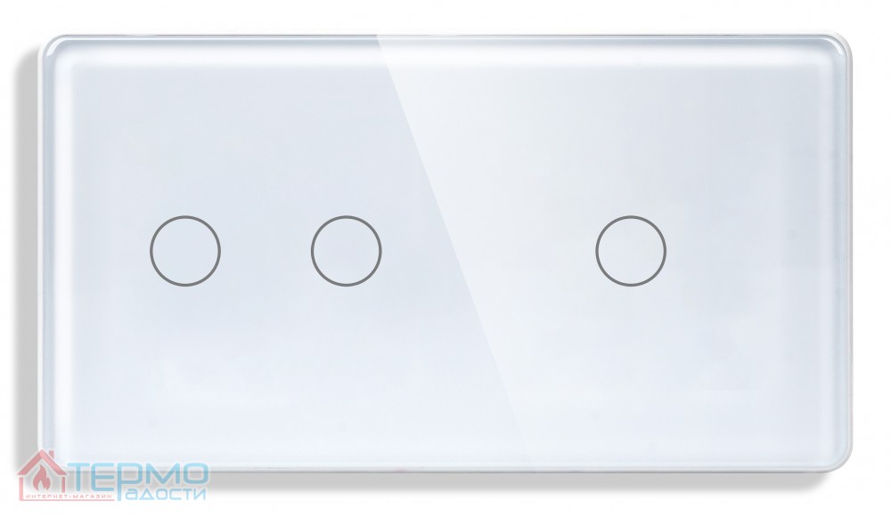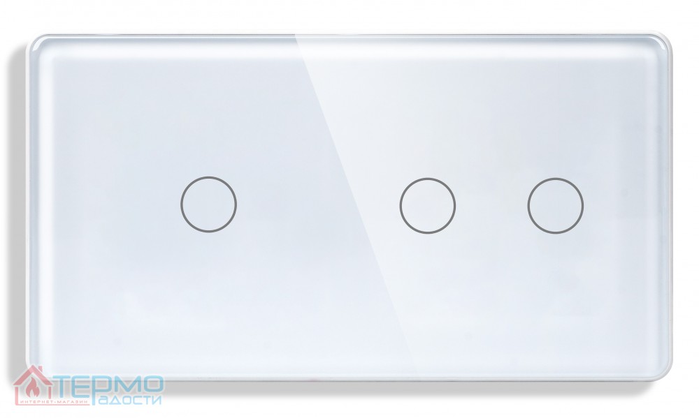 Двойной выключатель сенсорный 1DAL (1+2 сенсора) Белый стекло | С нейтралью