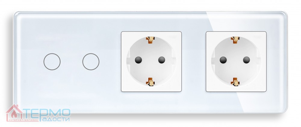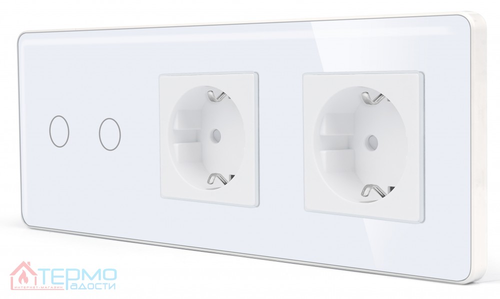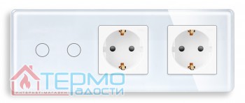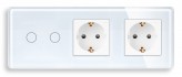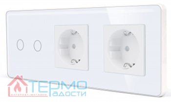 Сенсорный выключатель (2 кл.) + Двойная розетка | Белый, Стеклянная панель