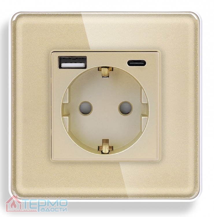 Умная WiFi розетка USB + Type-C 1DAL | Золото Cтекло