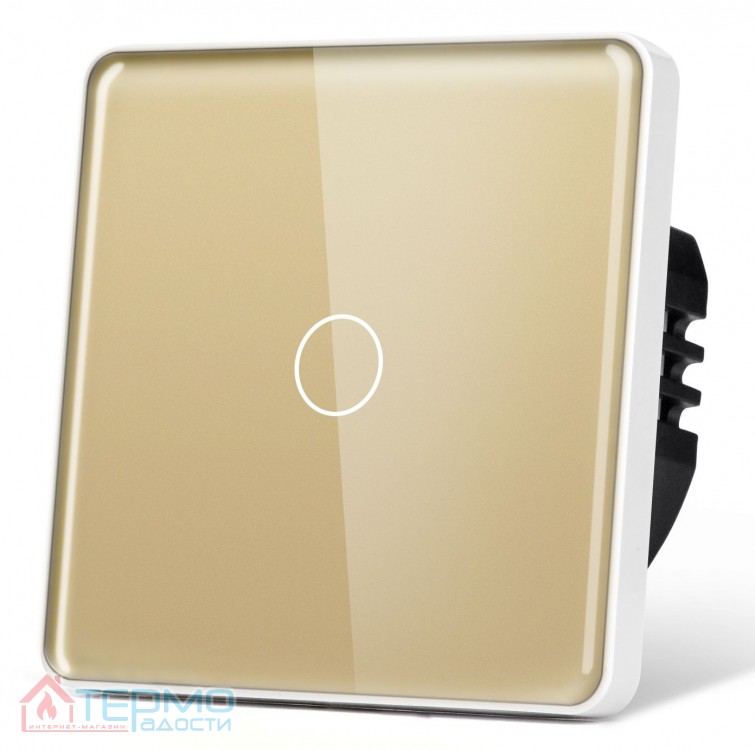 - Золотое стекло: Закалённое стекло придаёт выключателю элегантный и современный вид, легко вписывающийся в любой интерьер.