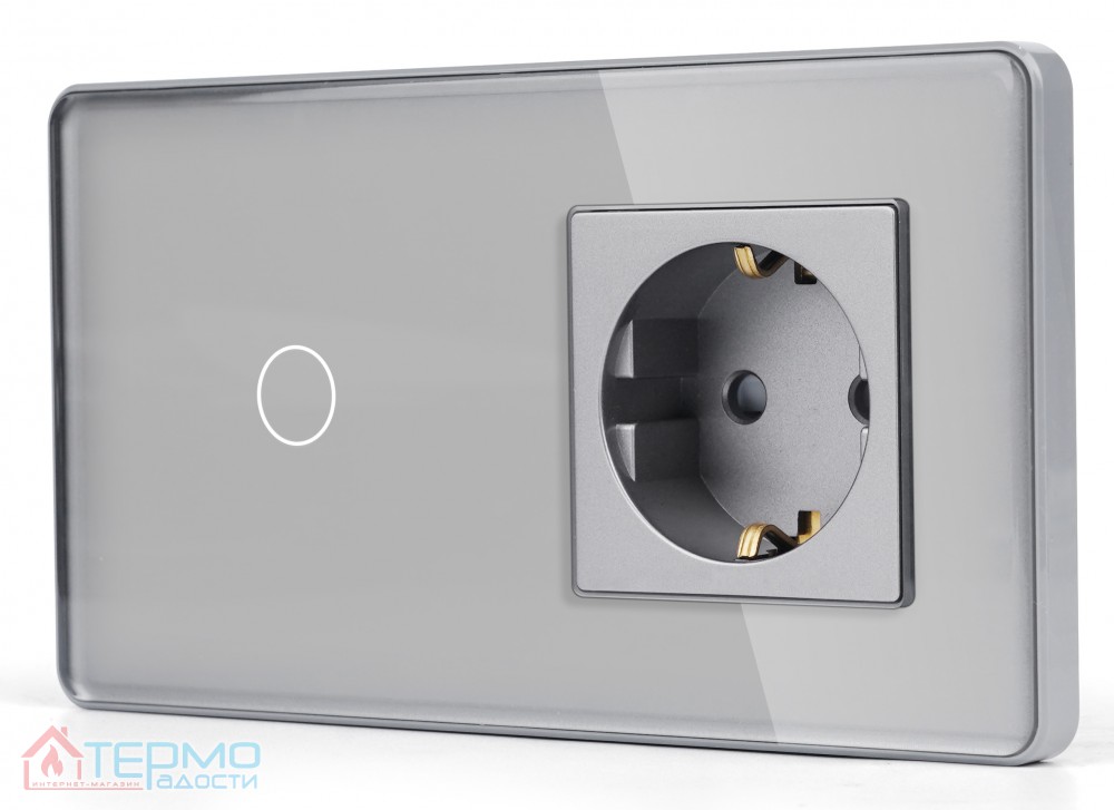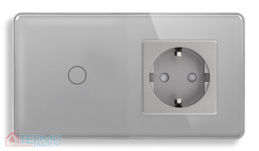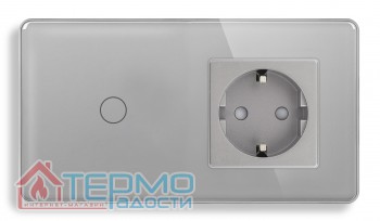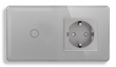 Сенсорный выключатель (1 кл.) + Розетка с З/К | Серый, Стеклянная панель