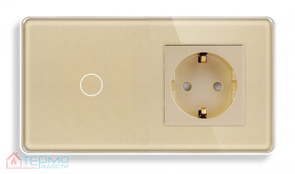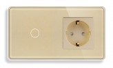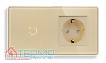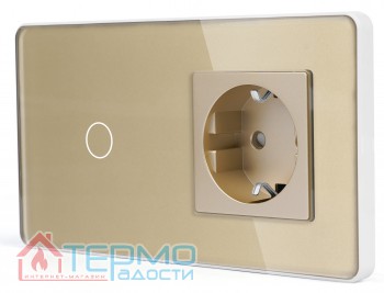 Сенсорный выключатель (1 кл.) + Розетка с З/К | Золото, Стеклянная панель