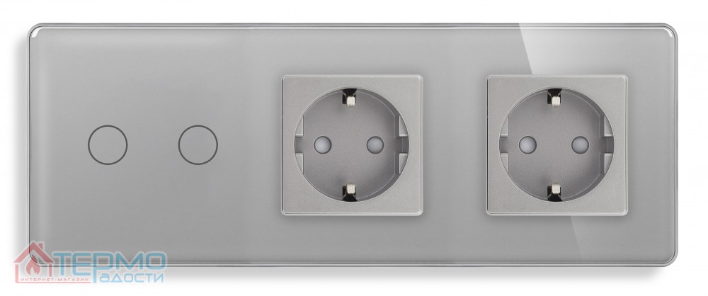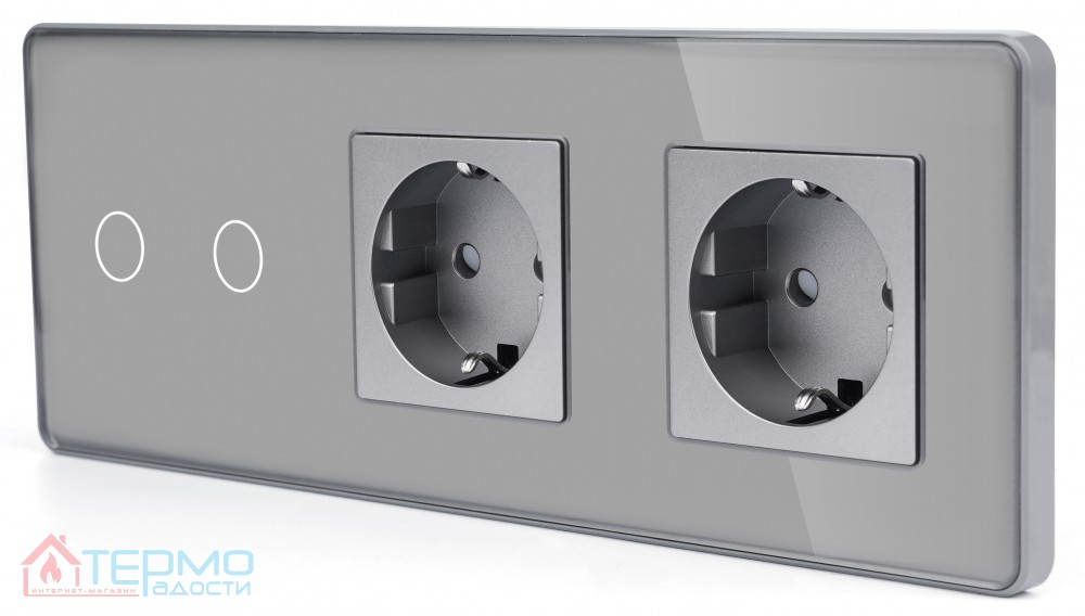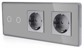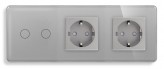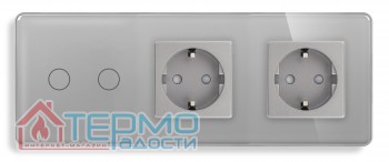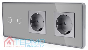 Сенсорный выключатель (2 кл.) + Двойная розетка | Серый, Стеклянная панель