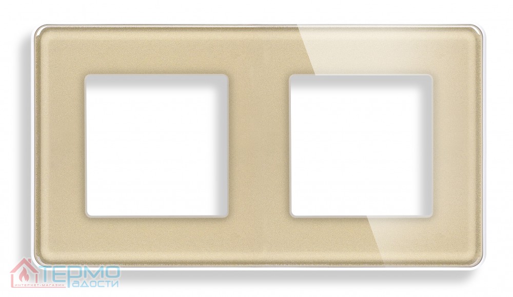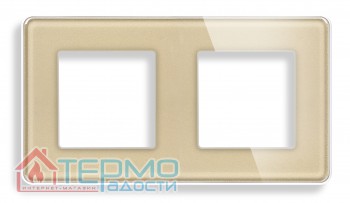 Стеклянная рамка 1DAL | 2 постовая, Золото + металлический суппорт — это надёжное и элегантное решение для установки электрических механизмов. Золотоэ закалённое стекло и прочный металлический суппорт обеспечивают долговечность и эстетическую привлекательность, делая её идеальным выбором для современных интерьеров.