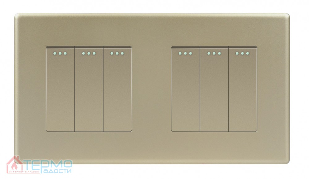Двойной выключатель (3+3 клавиши) 1DAL | Золото (P157-SW3GX2.GD) — это элегантный и функциональный электрический выключатель с двумя клавишами, предназначенный для управления двумя источниками света или другими электрическими приборами одновременно. Он идеален для удобного управления освещением в жилых или коммерческих помещениях и гармонично вписывается в современные интерьеры.