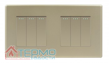 - Конфигурация 3+3 клавиша: две независимые клавиши позволяют управлять двумя группами освещения или электрическими устройствами отдельно друг от друга, обеспечивая удобство и гибкость в управлении. Это удобно для организации освещения в больших помещениях или зонах, где требуется раздельное управление.