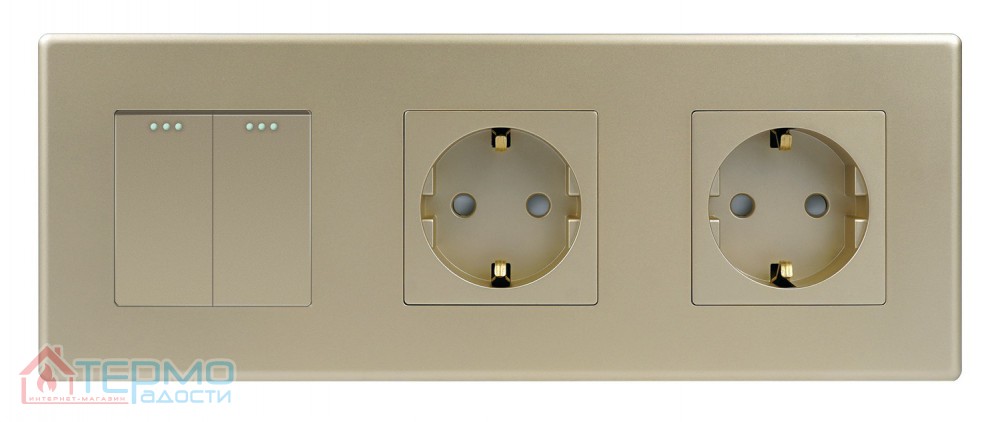 | Комплектация: | 1 выключатель, 2 розетки, тройная рамка, суппорт |