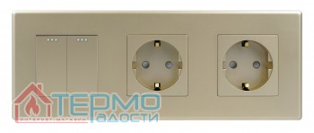 Выключатель (2 клав.) + Розетка З/К (2 шт.) 1DAL | Золото (P228-SW2G-STX2.GD)