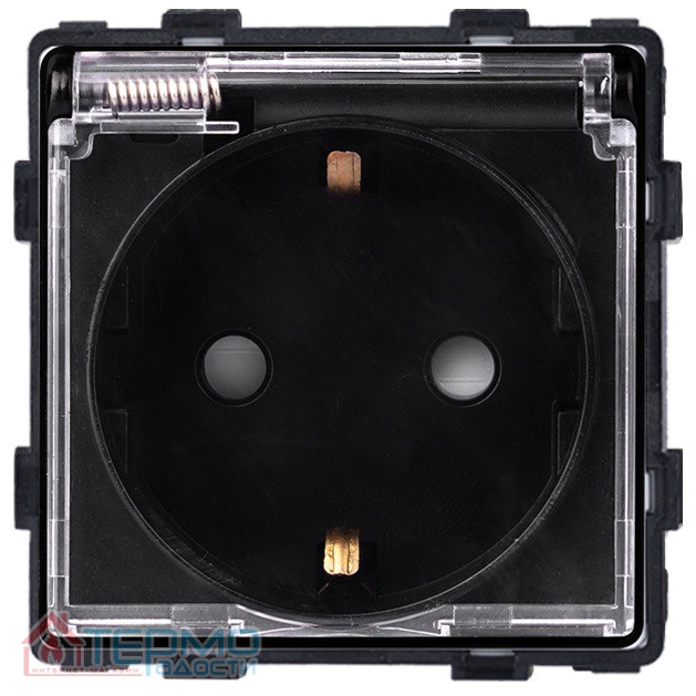 Розетка с крышкой 1DAL | Черный, З/К + шторки (P86-STCR.BL)
