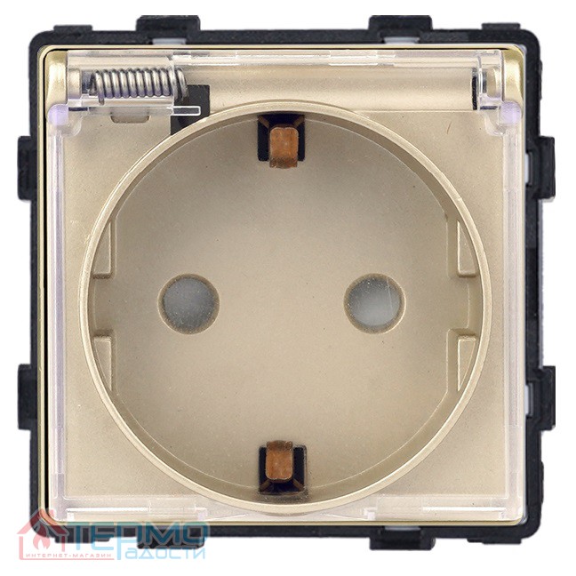 - Розетка выполнена в золотом цвете, что позволяет ей гармонично вписаться в любой интерьер, от классического до современного. Лаконичный дизайн и нейтральный цвет делают её универсальной для любого помещения.