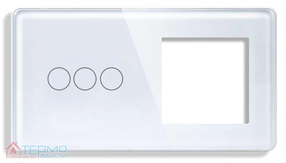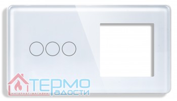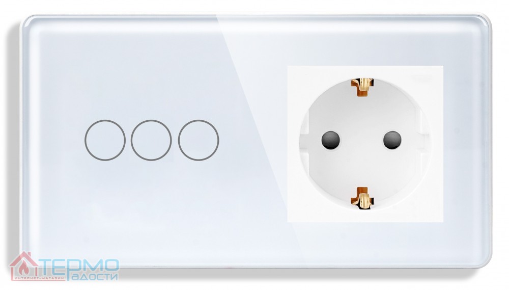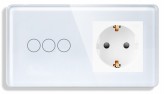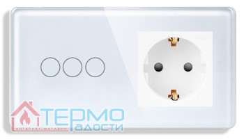 Сенсорный выключатель (3 кл.) + Розетка с З/К 1DAL | Белый, Стеклянная панель