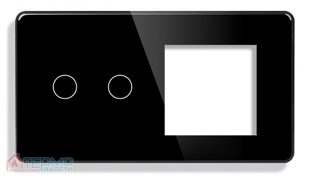 - Панель рассчитана на установку двух устройств: одно из которых оснащено сенсорным управлением, а второе предназначено для стандартного механического выключателя, розетки или другого совместимого устройства.